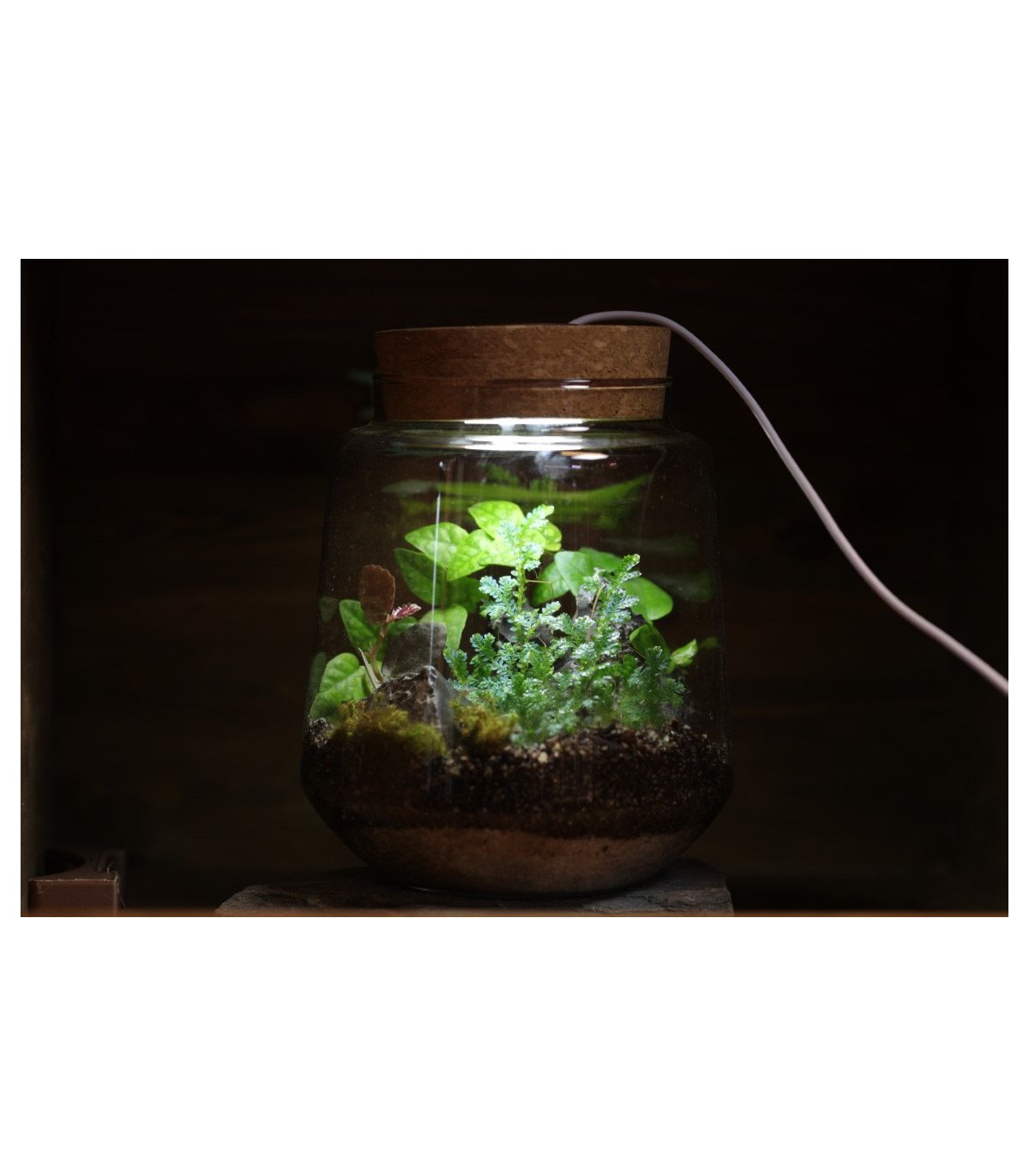 - Eclairage Led 3W, pour des plantes de sous bois, peu gourmandes en luminosité , éclairage blanc neutre (6500 K). Transformateur (chargeur USB 1A) non inclus.