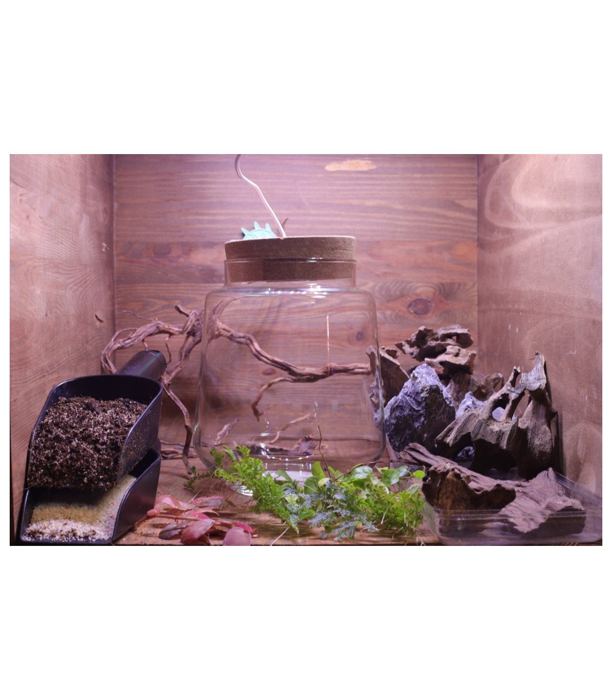 - Un mini terrarium, diamètre 15 cm, hauteur 17 cm.